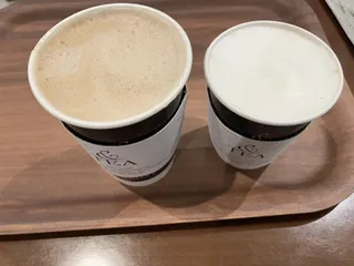 ハチコさんは本日はハチミツの売り子をやっておりました!健気で可愛いです〜 今日はカプチーノとデカフェのカフェラテをいただきました。デカフェの豆は好きなブラジルです!(^^)!やっぱりいつものが落ち着きますね☕️ 店員さんの挨拶と笑顔が素敵でした😊立て看板も丁寧に描いてあります。&