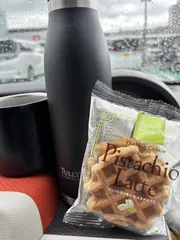 雨音を聴きながら、淹れたてのハウスブレンドに癒されています。ピスタチオが苦手ですが、ワッフルクッキーは好きです。トマトは好きだけど、トマトジュースは苦手と同じかなぁ🤔