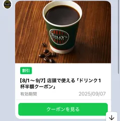 タリーズ公式ラインが始まったので友達追加しました。 なんとドリンク1杯半額クーポン当たりました!抽選で15万名のようですが、お早めに〜