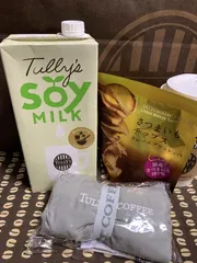 新作発売日✨欲しかったグッズを買い、店舗責任者さんがいらっしゃるか確認したら、不在のタイミング。 ダメもとで、いつもの顔馴染みのフェローさんに相談確認したら、あっさり、はい❣️大丈夫ですよ❣️と、タリーズのソイミルク🥛販売してもらえました🥰💓 豆乳は抵抗あるのですが、タリーズのロ
