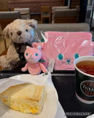 朝一行けました‼️ 今日は病院デーだったけどの前に行けました❗️ そして記念すべきミャラウィグッズの販売❗️ キャラクターがいくつかいる中でベアフル以外のグッズ私は初めてかと?コラボはありましたよねトムジェリやハリーポッターなど 私はタリーズオリジナルのファンであって😅ミャラウィのグッズは
