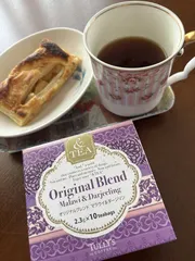 おうち紅茶 おやつは、アップルパイと紅茶。紅茶の香りが、お部屋に広がります。紅茶のコクとアップルパイの甘さが、溶け合います。アップルパイのお焦げは愛嬌😅